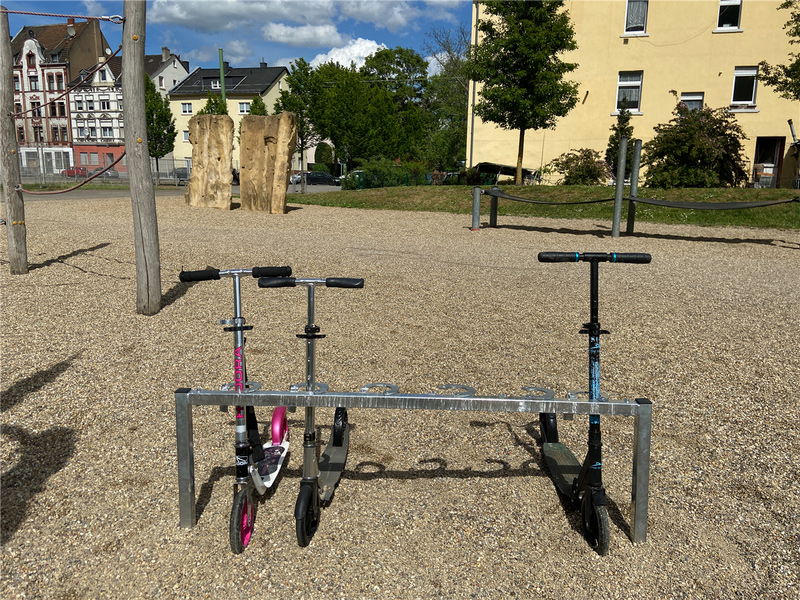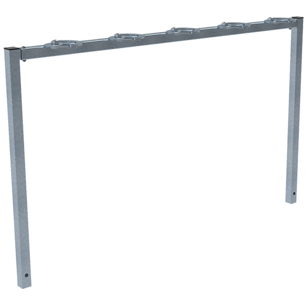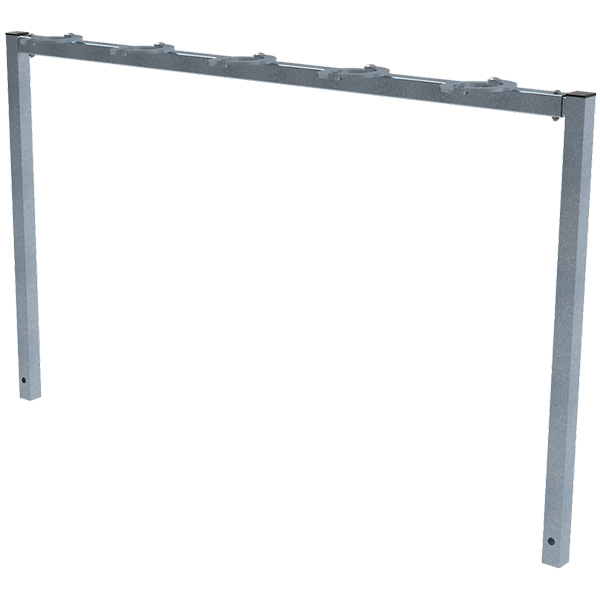Traverse carrée en tube d‘acier 40 x 40 mm, largeur totale de 1500 mm, hauteur d‘environ 650 mm hors sol, galvanisé à chaud.